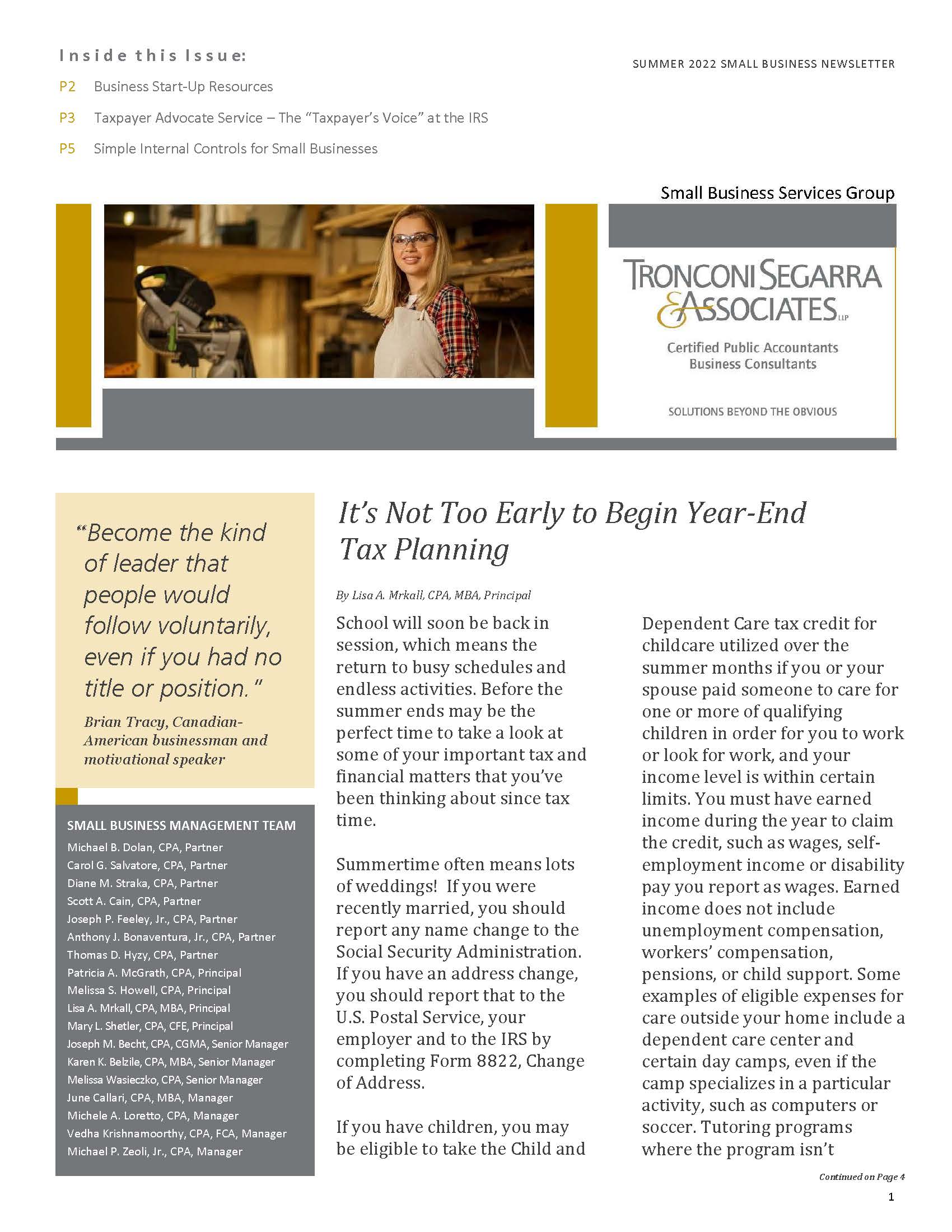 Full of timely and helpful information, the summer issue of our Small Business newsletter is here for you to read or download at your convenience. Please reach out to us if you have any questions or if there is something that we might be able to assist you with.